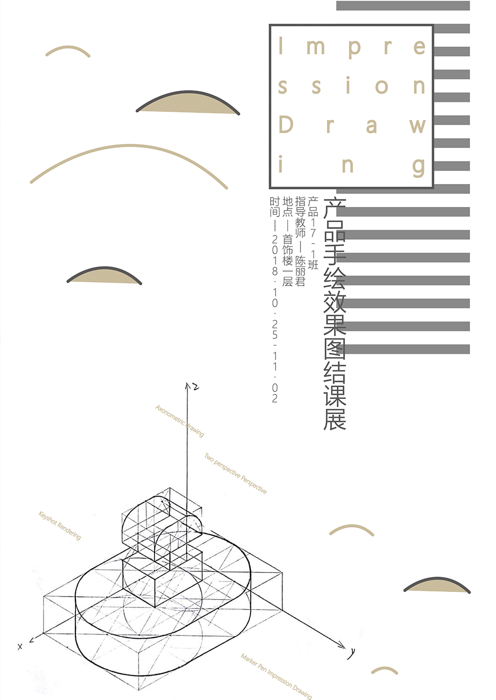 10月26日, 耿丹国际设计学院产品设计专业在首饰楼一层举行结课汇报暨 “产品手绘效果图”课程展览。本次展览的作品由产品17-1班现代生活空间用品方向的学生创作,由陈丽君老师指导,展览包括22名学生的30多张精选作品。