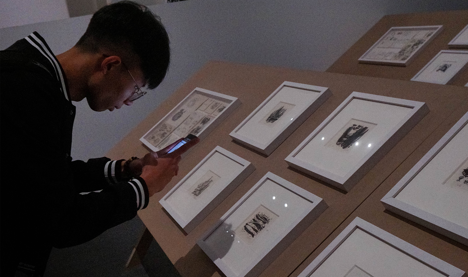 徐冰先生是当代国内外享有声誉的艺术家,此次同学们参观的展览是徐冰先生在北京地区最全面的回顾性个展,包括以版画、素描、装置、文献记录、手稿、影像、纪录片等为形式的六十余件作品,作品展现徐冰先生对于事物与其呈现形态之间的潜在疑虑,以及在细节表达的追求之间作品如何保持平衡。同学们受益良多。