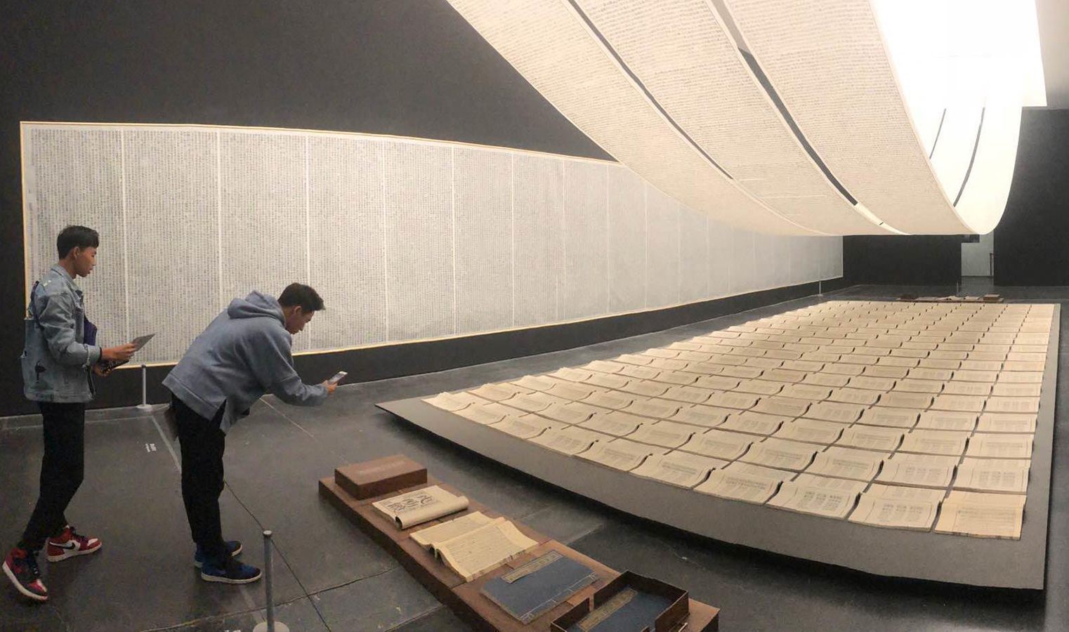 Mr. Xu Bing is a renowned contemporary artist in domestic and abroad. This exhibition is Mr. Xu Bing’s most comprehensive retrospective solo exhibition in Beijing. It includes more than 60 pieces of works in the form of prints, drawings, installations, documentaries, manuscripts, videos, documentaries and so on. The works show Mr. Xu Bing’s views on potential doubts about its presentation and how the work balances the pursuit of detailed expression. The students benefit a lot.