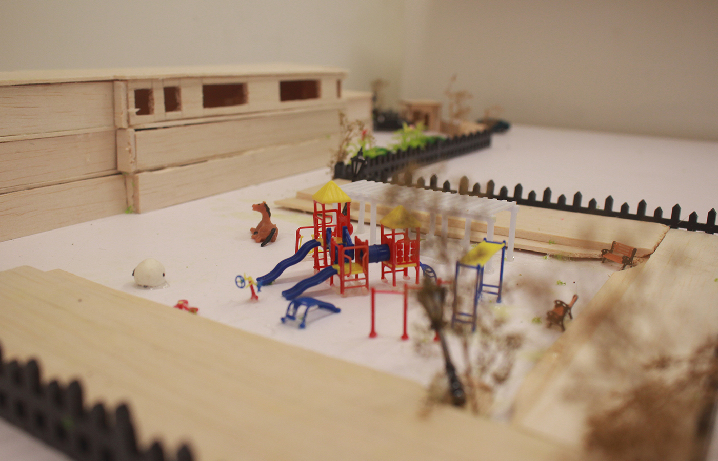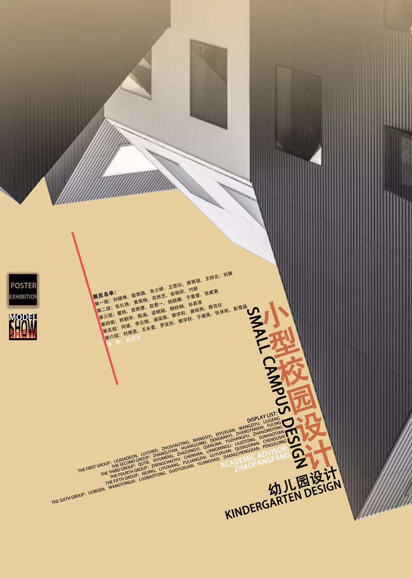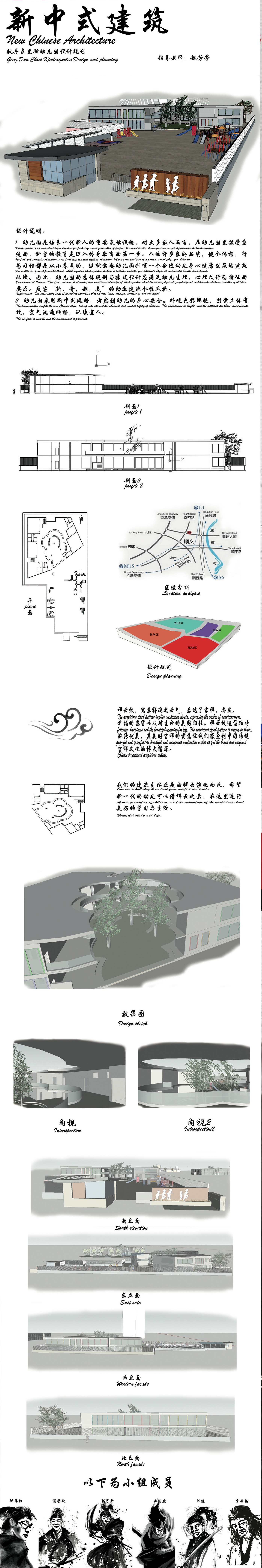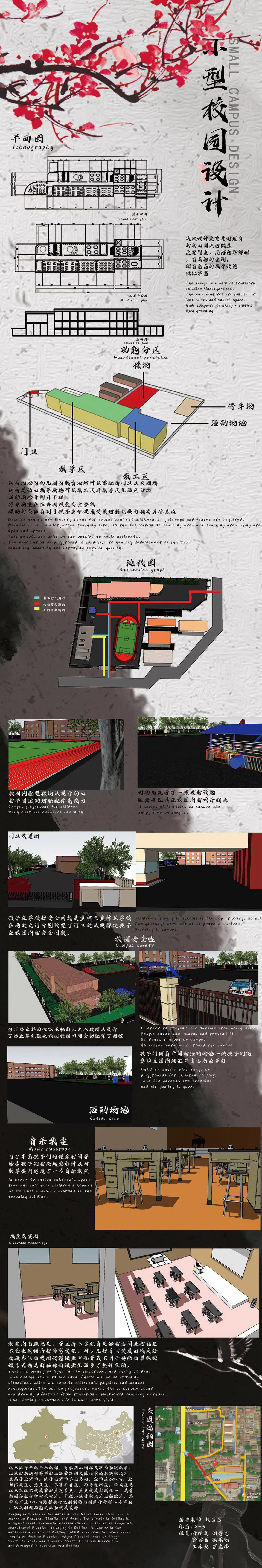 The theme of the exhibition is to revise the design of a kindergarten. The revision should be according to the geographical and social environment around the kindergarten. The design should be functional, and reasonable. Plans, sketches, and models are completed for each design. Students have learnt famous designs, through this course, so that they have broadened their horizon and root their design in a culture. The diversity of works has developed logical and critical thinking, handwork skills, and teamwork ability of the students.