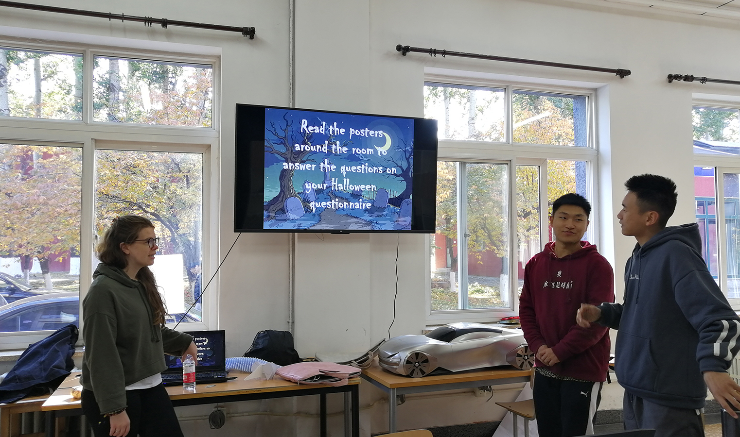 10月31日下午,由耿丹国际设计学院英语教研室组织的“万圣节英语沙龙活动”在艺术楼E200举办。本次活动由外教Nicola主持,英语教师芮艳芳协助,吸引了来自设计学院各个专业的学生。