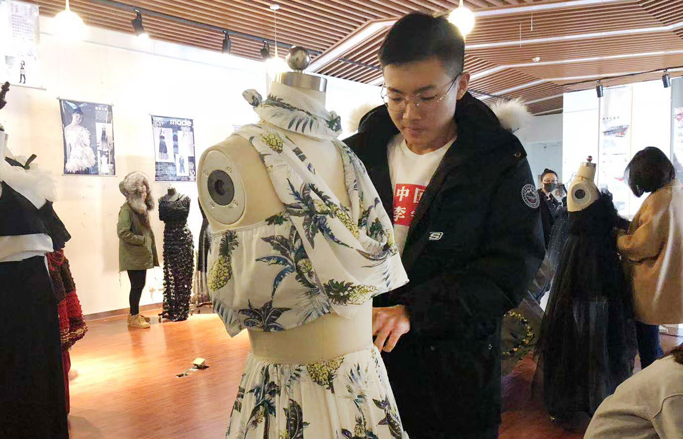 同学们利用充分利用立裁的直观性、实用性、灵活性加以自然褶裥、悬垂等形式,经历了汲取灵感,服装再创意的沉淀,从针织到绣花、再到拼接,亦或是环保材料制成的服装,创造出一件件别出心裁的作品。搭建了从设计元素点的创意、造型结构的提炼到设计制作的实践操作,展现同学们的独特的审美和素美的气质,每一件作品都在向参观者展现服装设计造型的美学。