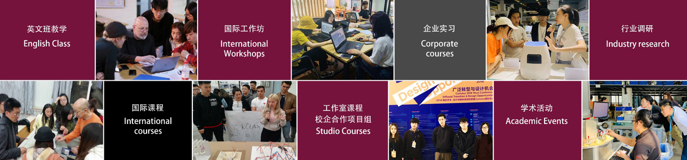 In 2017, the Academy joined the Cumulus, the only international consortium of art and design schools accredited by the United Nations, and has now established cooperative relationships with 47 universities abroad. The English-taught Visual Communication program was initiated in 2016, followed by the Environmental Design program in 2018, and by 2023, all four majors have fully advanced international education, with English teaching divided into IELTS classes and CET-4/6 English classes. The main features are as follows: