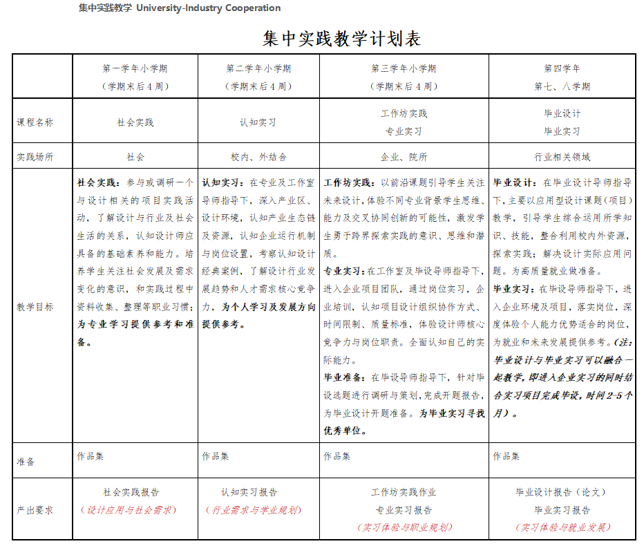 The Academy adheres to the principle of open-door education. On one hand, it has designed a intensive practical teaching plan divided into four phases according to the academic year: social practice, cognitive internship, professional internship, and graduation internship, ensuring that school teaching maintains interaction and connection with societal needs and industry development. On the other hand, the Academy invites industry designers with projects to establish school-enterprise cooperative studios (design centers) within the school, guiding students' course learning with topics (projects), and enhancing the experience of applying what they have learned. The Academy has now established cooperative relationships with more than 100 enterprises, such as Guangdong Shunde Industrial City, Artron Group, CCTV, Dassault, China Sky Eye(FAST), Founder Type, Huacan Award, Gooest Technology, Shengxun Information Technology, Hongjing Weizhu, JD.com, and others.