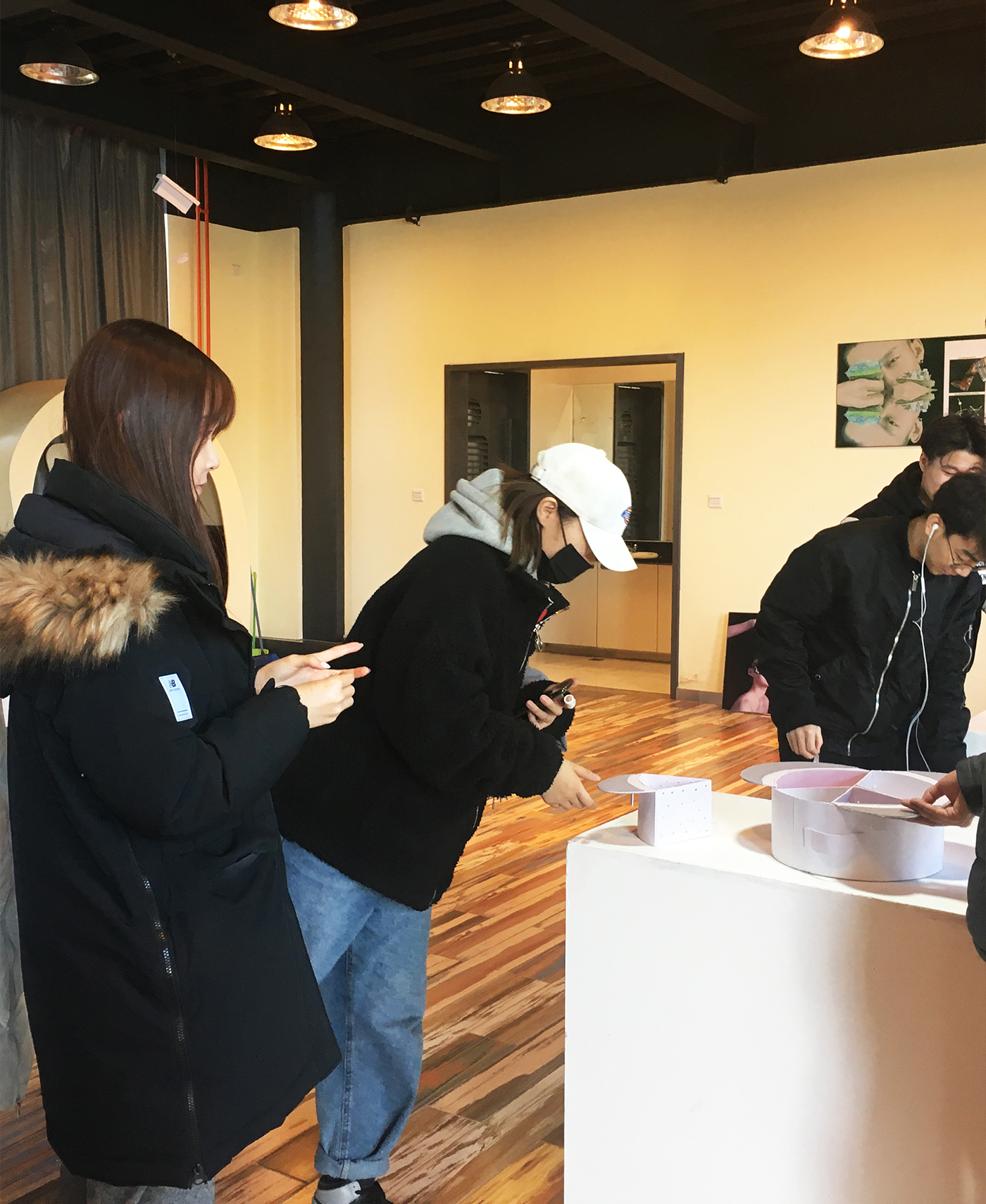 On December 7, 2016 year students of Product Design of Gengdan Academy ofDesign held an exhibition of”Future User Demand Design” on the first floor of the Jewelry Studio. The exhibition includes eight group works designed and produced by 29 students under the instructor Cai Shenghan. Shi Xiaoming and Zhang Wei, Product Design teachers , were invited to attend the exhibition.
