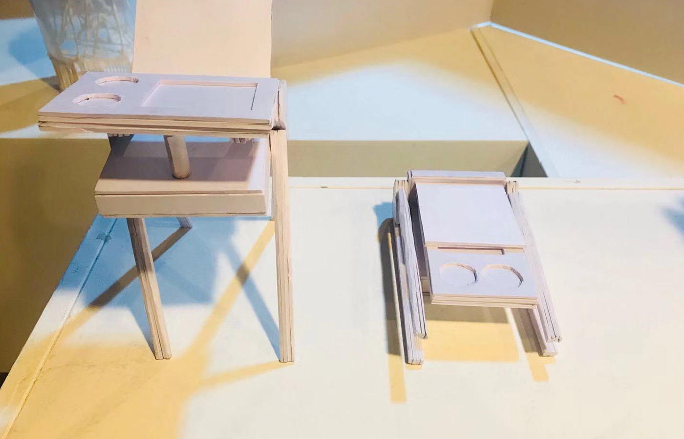 课程分三阶段进行训练,第一阶段基于兴趣点的调研和查询相关资料,第二阶段设计方案的思维扩散,第三阶段是设计概念最终呈现的模型制作。由于课程时间较短,本课程更着重设计灵感的摸索与方案的讨论,让学生对设计与艺术这两个领域之间的交融关系有一定理解,并且对未来的设计走向有自己的见解与判断。八个学生小组中,有展示茶文化在当代的转型思考,有探索火锅文化的新语言,也有对婴儿餐椅在实用性上的改良,也不乏挑战传统观念中对椅子的固有印象,这八件作品让我们看到了新一代设计师是如何用他们的独到的眼光和设计手法去阐释他们对生活的理解。