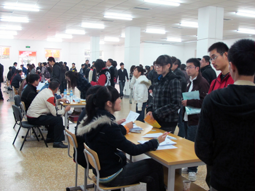 10月21日上午,365官网举办了2011届毕业生首场校园招聘会。北京升华电梯集团有限公司、北京嘉寓门窗幕墙股份有限公司、瑞祥装饰集团、北京白象新技术有限公司等12家企业参加了招聘会,提供各类岗位200余个,涉及管理、机械、信息和设计等相关专业。