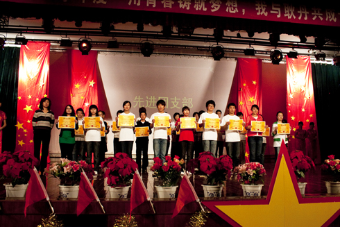 学生代表用感人至深的舞蹈《红旗颂》拉开了典礼的序幕,郭颖书记致辞。在校874名学生被授予优秀团员、优秀团干部、优秀学生干部等荣誉称号,吴院长、刘林院长助理、雍处长、金处长、吕主任分别上台致颁奖词并为获奖学生代表颁发荣誉证书。机械系团总支、艺术系团总支获得“先进团总支”荣誉称号。