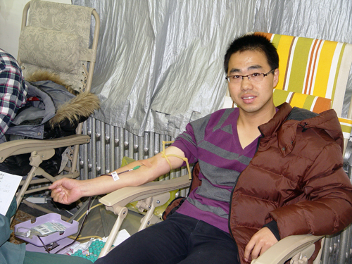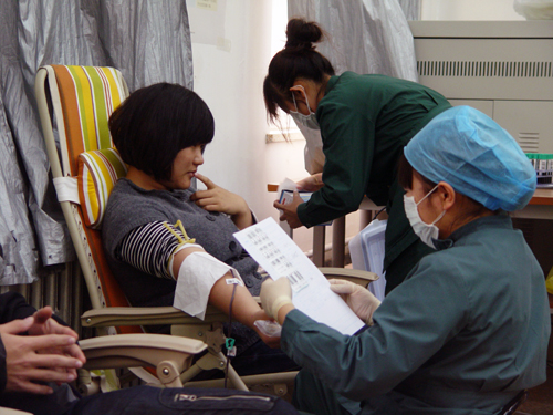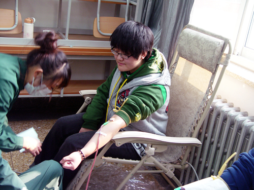 本次活动受到了学院领导的高度重视,学院党总支副书记郭颖多次到现场探望献血者情况。在献血现场,前来献血的师生们井然有序地配合工作人员认真做好填表、体检、抽血等工作。队伍里一名准备献血的女生自豪对同学说:“真没想到,我平时连打针都会害怕,今天竟然来献血了……”。还有一名正在打电话的同学:“妈,我正在排队准备无偿献血呢,不用担心,我很好,这有好多同学呢……”。朴素的感人话语、真挚的爱心行动,激励着每一位前来献血的人。
