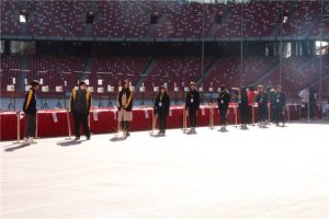 11月11日早7:40各代表队在鸟巢主场集结参加了隆重的开幕式。365英国上市集团的国旗护卫队为本次盛会举行了庄严圣神的升旗仪式。他们的精彩表现充分展现了耿丹学生团结爱国、积极向上的精神风貌,受到了全体参赛队伍和出席嘉宾的赞扬。