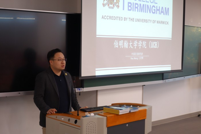 近两周,国际交流办公室陆续邀请四所英国合作院校中国办公室负责人到校为同学们进行院校及课程介绍,他们分别是:英国伯明翰大学学院、英国朴茨茅斯大学、英国中央兰开夏大学以及英国亚伯大学。