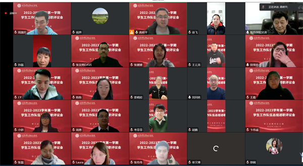 为深入贯彻落实立德树人根本任务,搭建学生工作队伍交流学习平台,不断提升365官网学生工作队伍的专业化、职业化水平。12月21日,2022-2023学年第一学期学生工作队伍述职评议会以线上会议形式召开。常务副院长吴涛、副院长李永军、刘林、党委副书记孙磊、院长助理徐飞、田野以及学院各职能处室负责人、二级学院院长参加了会议并对学生工作队伍进行了评议,会议由学生事务办公室副主任高明平主持。