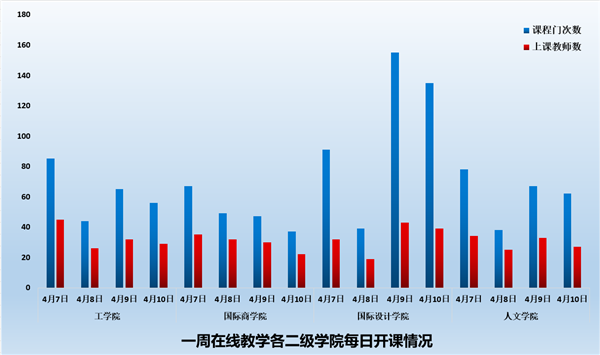 4月6日-4月10日期间,共有在线教学课程250门、1115门次;共有同学36083人次上课;共有190位教师进行了在线教学。学校积极落实了在线教学第七周对同学“全覆盖”的要求,基本保证同学每天在线学习。