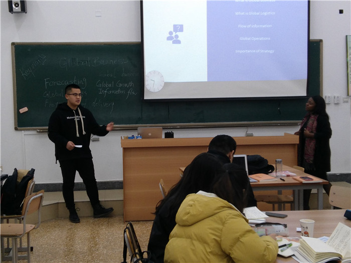课堂上,国贸2016级国际班的同学们与老师Stephanie Jerry对课程涉及到的专业物流知识和国际文化背景进行了积极的交流与互动。师生间交流活跃,教学气氛融洽,充分体现了在地国际化的魅力。课程结束后,Steve Brent教授对授课质量以及学生们的反馈给予了高度评价。与此同时,Steve也提出了对全英文授课的几点建议。首先,他建议学生们在每学期课程开始之前,需要完成对本门课程相关英语单词的学习。其次,建议英语老师和专业授课老师要对专业课程进行研讨,英语老师需要了解全英文授课的专业课的课程进度,并在英语课堂上配合专业课英语进行教学。第三,Steve建议英语非母语的教师需要与外教多配合,共同教学,提高全英文授课能力。(国际商学院供稿)