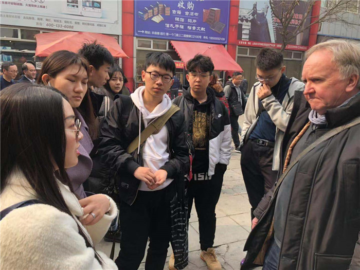 3月3日,耿丹国际设计学院视觉传达国际班18级的同学们在李钊老师及外教Tom Kelly和John Short的带领下,赴潘家园参观调研,为《视觉探索》课程收集素材。本课程是国际设计学院的精品课程,也是视觉传达设计专业的核心基础课程。该课程一直致力于研究和探索多方位多角度的思维创意方式,通过观察调研到创意实践,实现多维度的探索过程。本次18级的《视觉探索2》课程即围绕潘家园市场开展。
