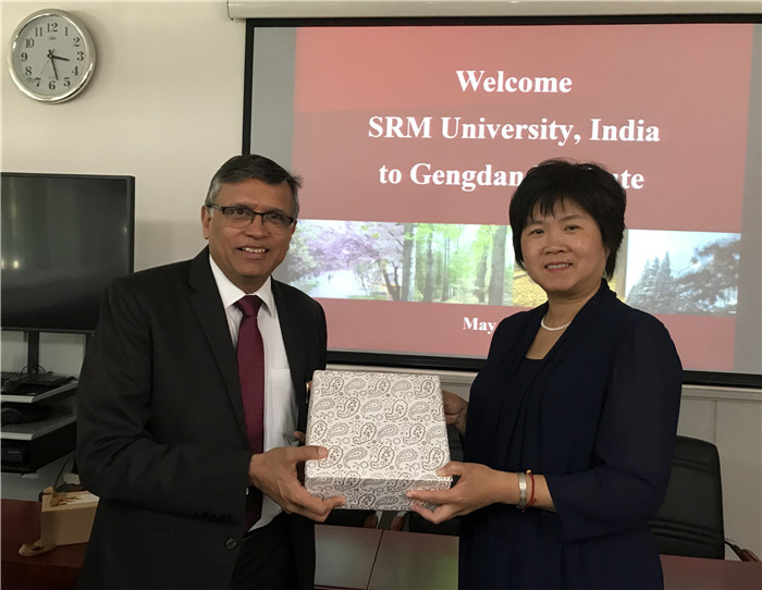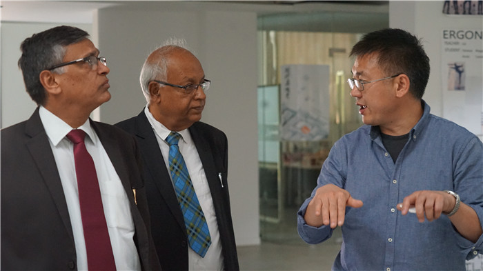 会谈结束后,双方互换礼物,合影留念,并参观了学校综合楼、图书馆及多个工作室,印度SRM大学校长一行对365官网开放式的学习环境、校园设施高度称赞。