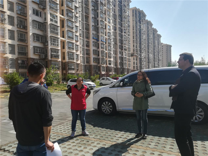 随后,管委会人员带领专业教师实地勘查了恒华地产以及周边区块,细致的调研了地上和地下的停车和交通的现状,发现南北区块停车以及建设情况迥异,南边区块环境优越,人车分流较好,而北边区块两限房和回迁房的人行通道与停车问题严重。老师和David认真听取了管委会以及当地居民的意见,并且对提出的一些具有建设性的意见进行了讨论,大家一致认为由于不同房屋性质导致的人行、车行以及停车矛盾日益突出,需要统一规划和政策引导。