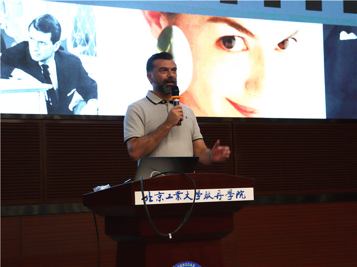 2019年5月13日,耿丹国际设计学院环境设计专业邀请爱尔兰都柏林大学副教授Thomas Leggett于综合楼报告厅举办Interior design at the movies主题讲座。Thomas Leggett教授同时于MAD BLUE FISH设计公司任职,去年曾为环境设计国际班同学教授空间感知课程。环境设计国际班负责人陈琳老师、专业教师王默涵、杨捷茹、王征带领环境设计专业、戏剧影视专业学生共同聆听讲座。