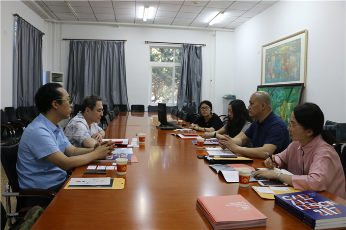 5月30日,美国圣何塞州立大学设计系教授Chang kim和Randall Sexton以及学生来365官网国际设计学院参观交流,国际交流办副主任王晓宇、国际设计学院院长林子杰、国际设计学院国际办主任陈丽君、视觉传达专业教师李钊参加了此项交流活动。