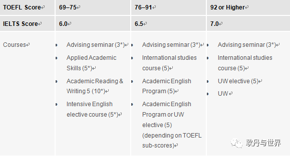 语言成绩不达标者,也可以参加项目,视情况加读语言课程(如下图),详情请咨询项目指导老师。