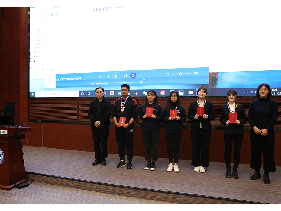 最后,到会教师和领导为获奖同学颁发荣誉证书,合影留念,并对参赛同学提出了衷心祝愿。