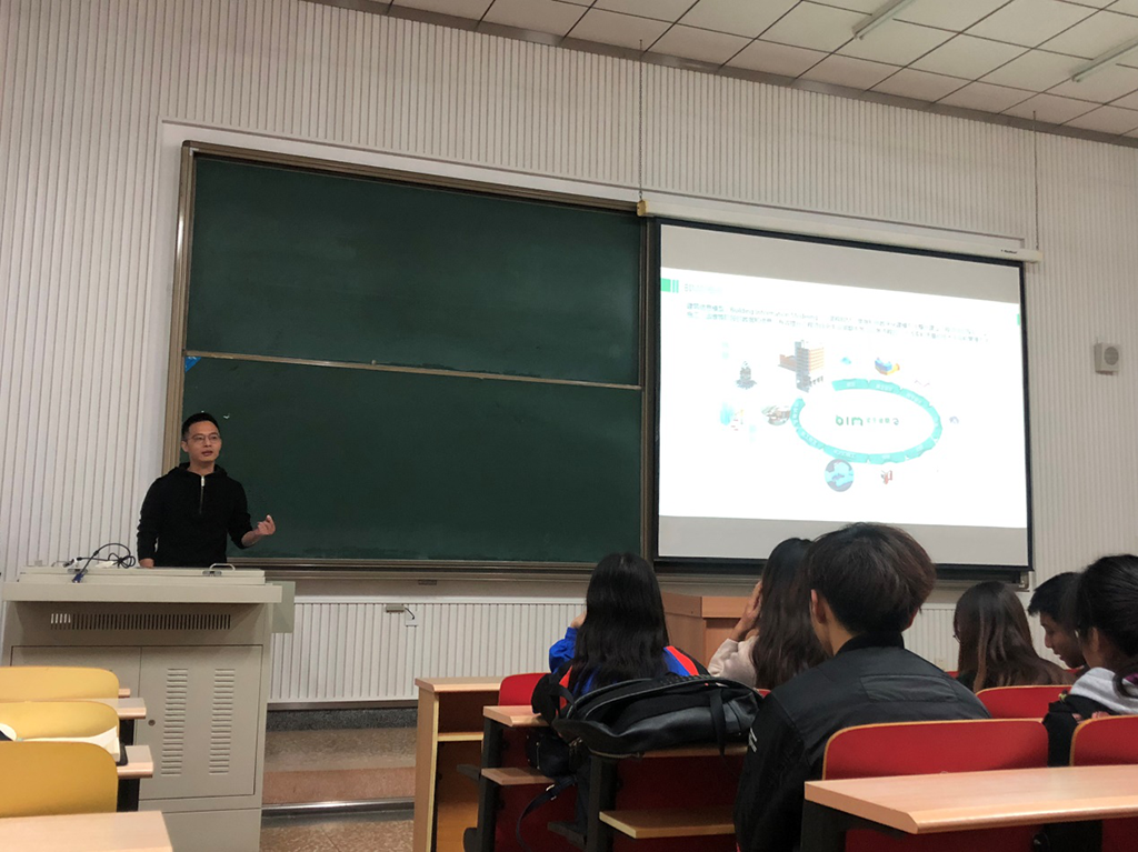 11月1日下午,上海开装建筑科技有限公司总经理李季、部门经理毛科轶,应邀在教学楼CJ07多媒体阶梯教室为工学院师生举办了一个以《BIM与装配式的概念及应用》为主题的专题讲座。