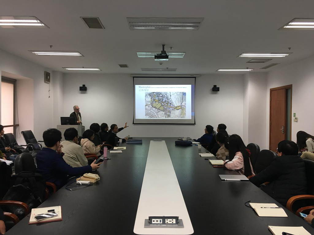 11月27至28日, 工学院学术委员会主席Henk van der Kamp、城乡规划专业蒋天洁、苏扬老师、建筑专业李朵阳老师一行前往浙江大学进行了为期两天的学术交流访问。期间,分别与浙江大学校领导和浙大规划院领导交流进行了广泛的学术交流与项目合作洽谈,达成了一些合作共识,27日下午 Henk先生给浙江大学、浙大规划院领导做了精彩的学术讲座。