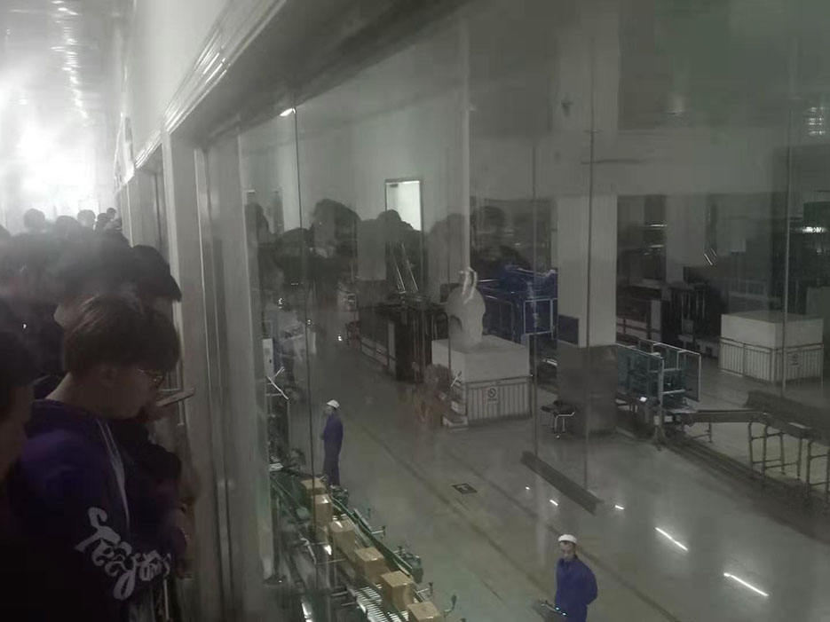 该厂位于顺义区牛栏山镇,分新老两个厂区,共占地600亩,该厂也是365官网的邻居单位。在导游引导下,同学们全面地了解了白酒的酿制过程。其间,李永军院长不时提醒同学们:对酿造发酵过程中所使用到的机械装置和机械设备要多观察、多提问、多思考,要学会用机械行业的眼光来分析工业问题。在新厂区的酒液罐装和贴签装箱生产线,李院长对其使用的机器手臂和自动装置进行详尽的分析讲解,使同学们对现代化生产线有了初步了解。