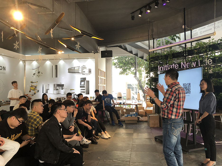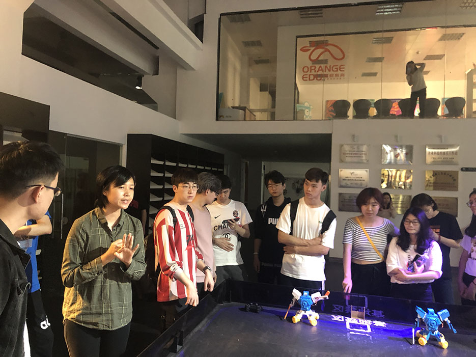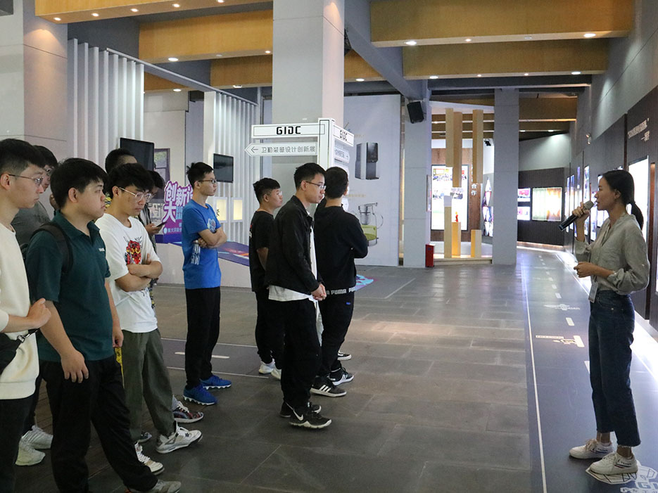 开课仪式结束后,创新设计研究院教务处的黄老师与梁老师带领同学们参观了广东工业设计城博物馆、老年生活体验馆。11日下午参观考察了潜龙设计、和壹设计、米朗设计及骏铭三维科技等4家工业设计城园区内的公司。通过参观调研,同学们收获颇丰、感触很大。工业设计专业王伯维同学明确表示愿意在这里延长毕业实习时间,毕业后至少要在顺德呆上2到3年,成为一名真正的设计师后再回北京;电子专业李冬至同学表示,如果在北京开办类似于骏铭三维科技这种K12教育科技公司,未来的就业和发展就可以迎刃而解。