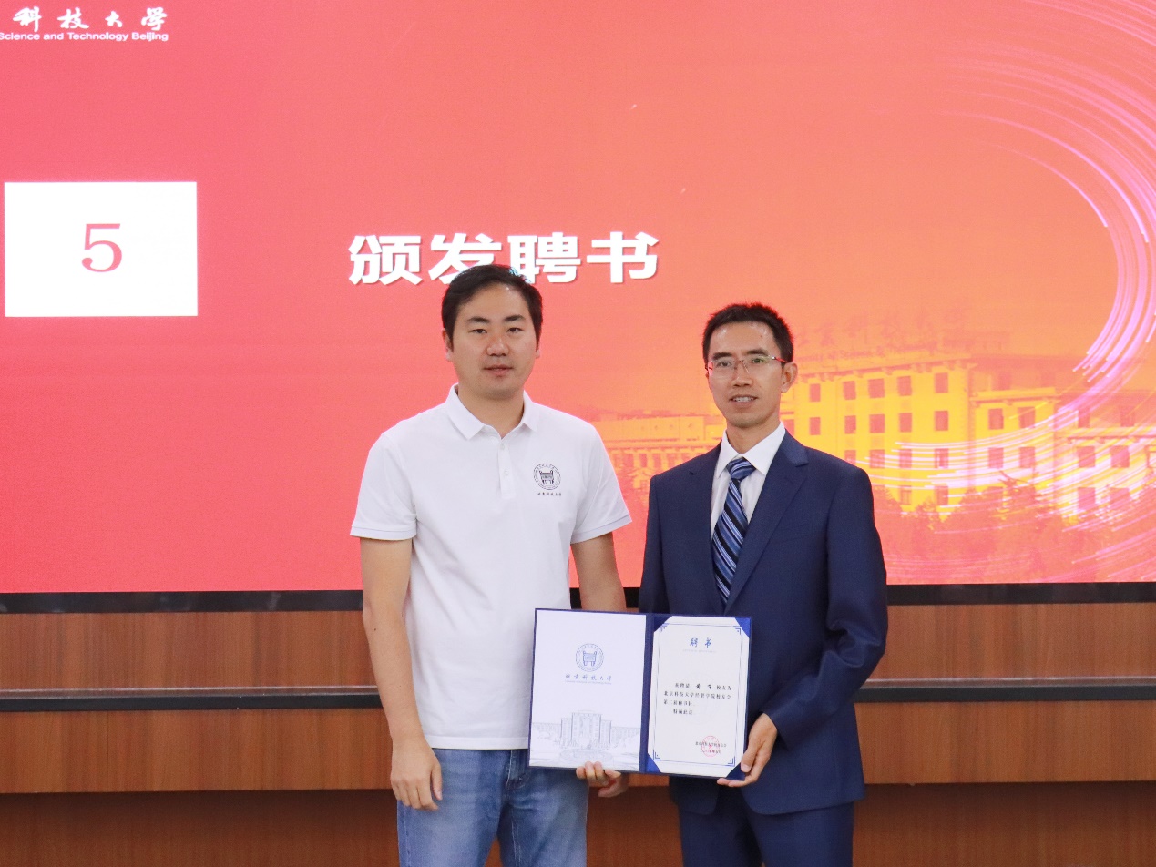 何民庆、谷炜、武森、申轶男分别为到会的校友会第二届常务理事会成员颁发聘书。