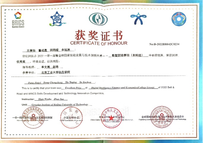 国际经济与贸易专业代表队在“2022一带一路 暨金砖国家技能发展与技术创新大赛”荣获团体优秀奖