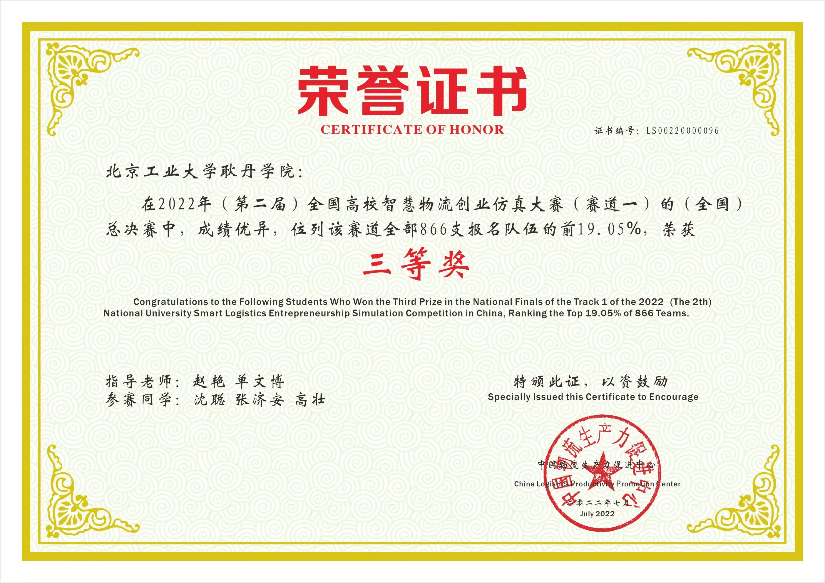 国际商学院学生在2022年(第二届)全国高校智慧物流创业仿真大赛中取得佳绩