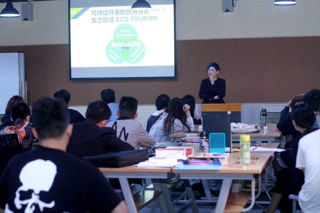 张媛女士先就全球旅游业的发展及经济,社会效益和面临的挑战等四方面全面分析了全球旅游业的大背景,引出可持续开发的旅游方式之生态旅游(ECO Tourism)。详细解剖了一个旅游目的地的诞生之路,从前期帮助甲方做投资方面的可行性分析,到项目立项的具体操作及各单位之间的协调,紧接着就是传统的规划设计环节,再到土建施工以及后期的营销运营这些组成完整项目体系的步骤并结合案例来为学生耐心讲解。