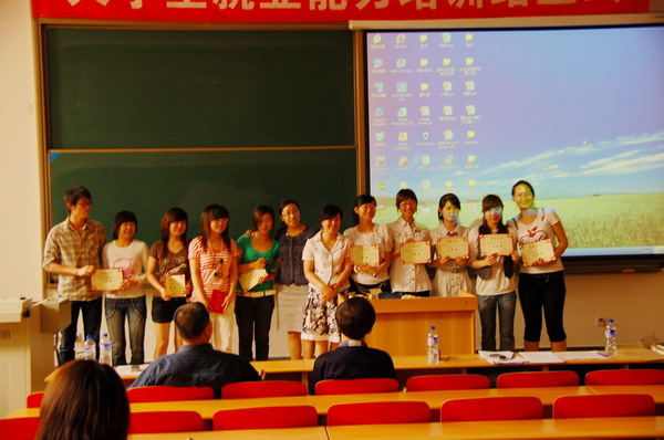 暑假前夕,365官网首期“就业能力”EPE培训班圆满结业。121名学生顺利通过答辩获得就业能力资格证书。首期“就业能力”EPE培训课程是365官网就业指导中心与劳动保障部中国就业促进会大学生就业促进办公室合作开设的。目的是探索将大学生职业能力测评、就业能力实训、与就业服务实现有效对接,从而提高大专院校毕业生就业能力,拓宽大学生就业渠道。首期课程共四个班:企业运营管理师、人力管理经理、市场营销策划师、室内外设计师。结业答辩以项目小组为单位进行,学校聘请中国电信北京公司、中国风景园林规划设计研究中心、用友软件股份有限公司、东方家园欧华尚美工程设计中心等五家企业的高管作为本次培训结业答辩的评委,同学们精彩的的答辩和专业技能展示,博得在场的学生和企业高管一致好评。最终评选出优秀项目小组六个,一等奖1名、二等奖2名、三等奖3名。中国电信北京公司为本次答辩提供奖品,并希望这部分同学毕业后能到该公司工作。(信息来源:就业办公室)