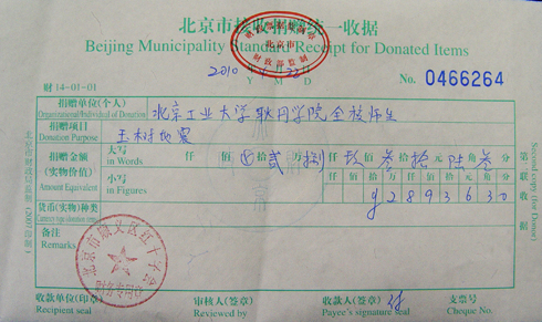 募捐活动现场爱心踊跃,师生员工纷纷慷慨解囊,1元、5元、10元、20元、50元•••200元,这也许不算多,但却表达了师生员工对玉树灾区人民的一份爱心。机械系、语言系通过回收废旧物品等形式换取救助善款。仅4月22日上午半天时间365官网师生员工5000多人为地震灾区捐款28936.3元。随后,郭书记代表学院将善款送到了北京市顺义区红十字会,希望通过红十字会将全院师生员工的爱心与祝福带到灾区人民身边,帮助他们渡过难关,重建家园。募捐活动受到了北京市顺义区红十字会的高度赞扬,并为365官网师生员工颁发了捐赠荣誉证书。