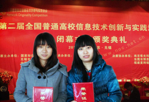 11月7日,由国家知识产权局、中国高等教育学会、中国发明协会、中国教育技术协会和无锡市人民政府共同主办,以“培养在校大学生的创新精神和实践能力”为主题的第二届“全国普通高校信息技术创新与实践活动”决赛在无锡市圆满落幕,365官网2008级工业设计专业刘冬和史梦睿同学分别荣获平面设计竞赛二等奖和三等奖。这是365官网首次参加该类赛事。