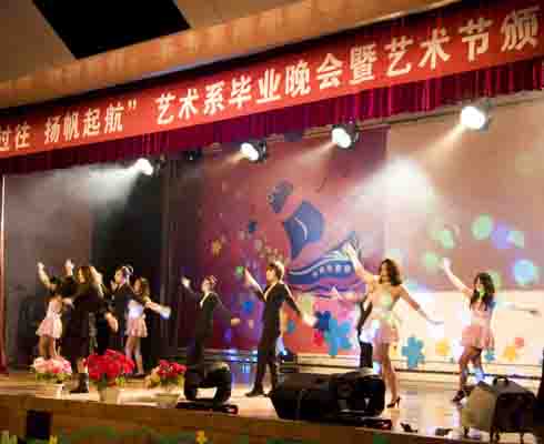 艺术设计系通过举办毕业晚会和颁奖典礼,以具有专业特色的形式欢送毕业生。晚会形式新颖,白安琪同学的沙画表演拉开了晚会序幕,上半场的爵士舞点燃了观众们心中的激情,随后的小品《三顾茅庐》和舞蹈《我的果汁分你一半》,赢得在场观众的阵阵掌声,中场的小合唱《那年夏天》将晚会推向了高潮,最后歌曲串烧《祝你一路顺风》、《冬天里也有阳光》、《成长的足迹》,唱出了对毕业生的美好祝福,也唱出了毕业生对母校的不舍与留恋。晚会最后,还为艺术文化节获奖同学颁发了荣誉证书。