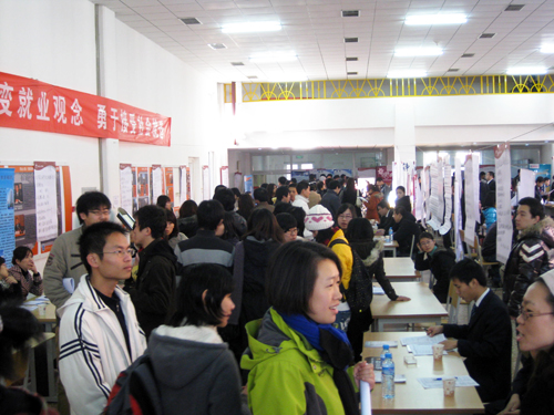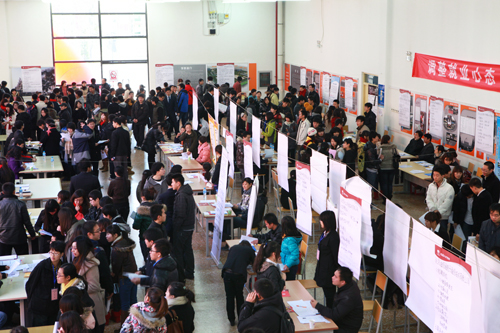 在学院领导的亲切关怀、各系部教师的积极配合及用人单位的大力支持下,365官网2011届毕业生校园双选会于11月27日上午在图书馆大厅拉开帷幕。为了保证本次双选会的顺利举办,就业指导中心精心组织,周密安排,积极走访,邀请重点企业到校招聘优秀人才。本次双选会被市教委纳入高校毕业生就业服务月的系列活动中,成为展示学院和毕业生风采的又一良好平台。