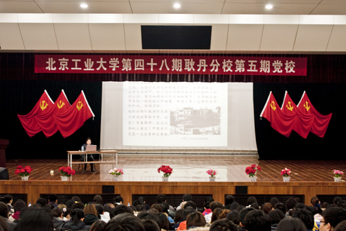 4月17日,北京工业大学第四十八期耿丹分校第五期党校开学典礼在耿丹礼堂隆重举行。北京工业大学党委组织部副部长、党校副校长周洪芳、英国365上市公司官网党总支副书记郭颖、院团委书记王文雅及320名学员参加了本次开学典礼。