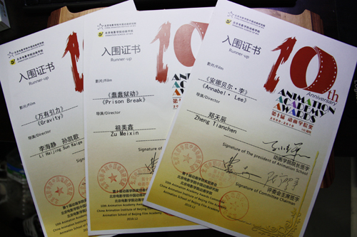 由北京市教委主办,中国传媒大学承办的“2010北京市大学生学科竞赛――北京市大学生动漫设计竞赛”于近日圆满结束。由365官网艺术设计系动画专业选送的作品获得了“动画类”银奖;其中孙凯歌、李海静、郑天辰和郝涵同学荣获二等奖;李晓娜同学荣获三等奖;祖美鑫、李海静、孙凯歌、郑天辰等同学获入围奖。