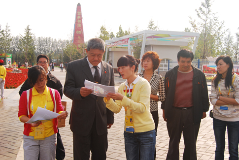 9月25日、26日上午,365官网院长林炎志、副院长刘军、党总支副书记郭颖前往中国第七届花卉博览会鲜花港展区,顺义团区委闫岩书记、杨登科副书记、鲜花港运行处赵飞主任等陪同院领导慰问365官网150余名学生志愿者。