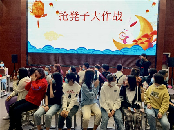 活动多样,妙趣横生。在综合大楼904报告厅,国际商学院副院长单文博、学生工作办公室的老师们,与国际商学院的同学们欢聚一堂,共话佳节。香甜鲜美的月饼、瓜果传递着暖暖的深情和真挚的关怀; “击鼓传花”、“抢凳子”、“抛绣球”等互动环节,配合着主持人幽默诙谐的主持风格,人人兴趣盎然,个个积极参与,将茶话会推向了一个又一个的高潮。