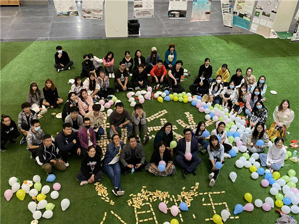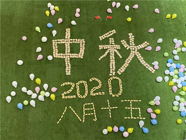 温情萦绕,爱国情深。在综合楼二楼绿色的草坪上,人文学院的师生们席地而坐,围绕着由月饼拼摆而成的“中秋”等金灿灿的字样,共享这温情、圆满的一刻。除了丰富的团体活动、多样的才艺展示以外,全体师生一同点蜡烛、切蛋糕,一齐为祖国许下“繁荣昌盛、国泰民安”的愿望。最后,全体师生挥舞的小红旗,为祖国华诞打卡留念。