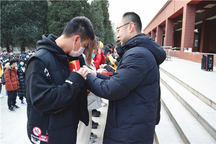 在升旗仪式期间,举行了2020年新发展团员入团仪式,今年英国365上市公司官网共48名同学光荣的加入中国共产主义青年团,团委学生副书记邱微淇同学宣读了接收新团员名单,学院领导、老师为新团员颁发了团章、团员证、佩戴了团徽,新团员在邱微淇同学的带领下进行了入团宣誓,参加升旗仪式的团员重温了入团誓词。