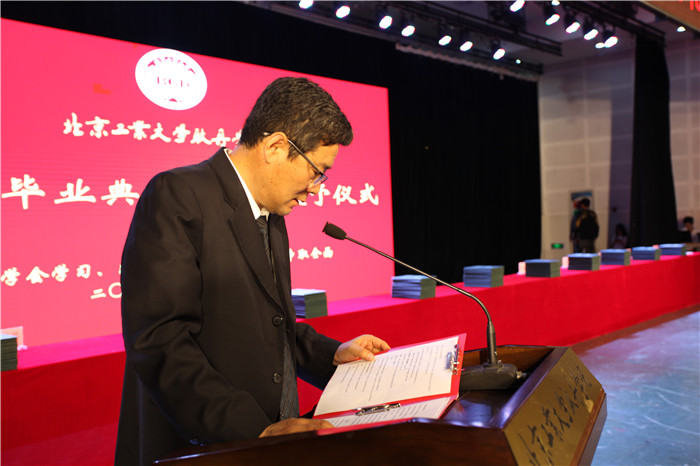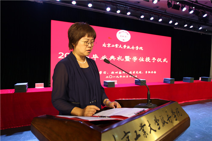 荣誉院长弗兰克·麦克马洪博士宣读《关于授予2019届本科毕业生学士学位的决定》;副院长刘林宣读《关于授予2019届市级、校级优秀毕业生的决定》;党委书记王燕琪为市级优秀毕业生颁发证书;党委副书记孙磊为校级优秀毕业生颁发证书。