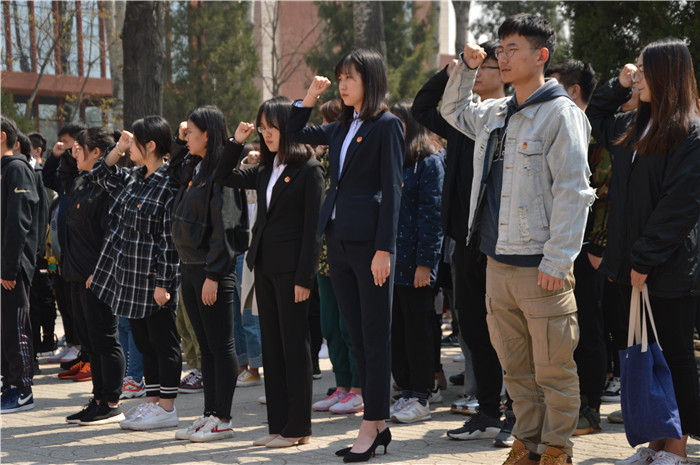 今年是中华人民共和国成立70周年,也是五四运动100周年,为继承和发扬革命先烈的光荣传统,激励和引领广大青年学生坚定理想信念、弘扬以爱国主义为核心的伟大民族精神,矢志拼搏奋斗,4月4日,在我国传统节日清明节来临之际,来自各班级的200余名团支书和团员代表聚集到耿丹烈士雕像广场组织开展了“青春心向党 建功新时代”纪念五四运动100周年特别主题团日活动。学院党委书记王燕琪、副院长徐胜云、刘林、人文学院通识中心主任郑莹及全体学工老师参加了活动。