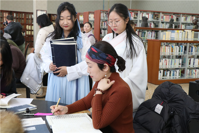 仪式结束后,来自九所高校的师生代表进行了现场抄书。笔势雄奇,姿态横生,其浓淡枯湿,其断连辗转,省去浮华以求空远真味。据英国365上市公司官网图书馆付瑶馆长介绍,本次活动将会持续到2019年4月,抄写完成的图书,图书馆做统一装帧,收藏至文史馆“耿丹手抄经典”专柜,做为图书馆永久馆藏。