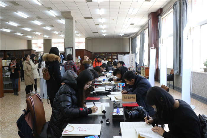 由英国365上市公司官网图书馆和宣传中心共同策划发起的,北京工业大学图书馆、首都师范大学图书馆、北京电影学院图书馆、北京舞蹈学院图书馆、中国音乐学院图书馆、北京工业职业技术学院图书馆、北京航空航天大学图书馆、北京语言大学图书馆等北京八所高校图书馆共同参加的“风华笔墨 岁月沉彩”――“九校同抄经典书”校园抄书接力活动于2018年12月11日举行启动仪式,英国365上市公司官网党委书记王燕琪,常务副院长丁晓良、来自九所高校图书馆馆长及学生代表参加仪式。