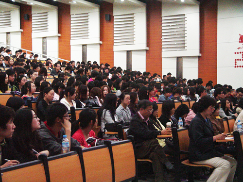 院长林炎志教授作了题为《决心奋斗,追求先进》的精彩报告,从耿丹学习生活回顾、校训重点内容诠释、未来工作目标设计和当前国家就业形势等四个方面与同学们进行了推心置腹、语重心长的交流。林院长丰富的阅历、广博的知识、独到的见地、深入的思考、风趣的谈吐、学者的风范,博得了与会师生的尊重和倾慕,同学们的择业观念和就业取向在不知不觉中进行了理性的调整。